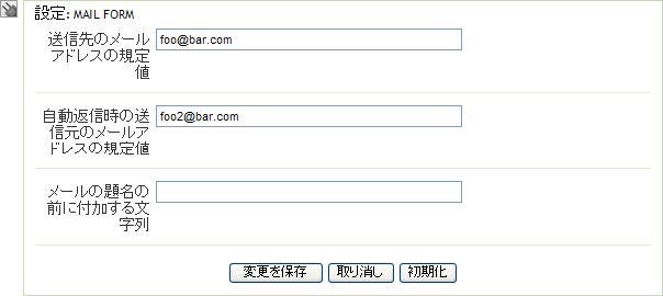 - 自動返信メールを送信する場合の、送信元のメールアドレスの規定値