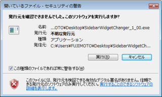 また、スタートボタン→「すべてのプログラム」→「Sidebar Widget Changer」→「Sidebar Widget Changer」の順にメニューを操作すれば、起動することができます。