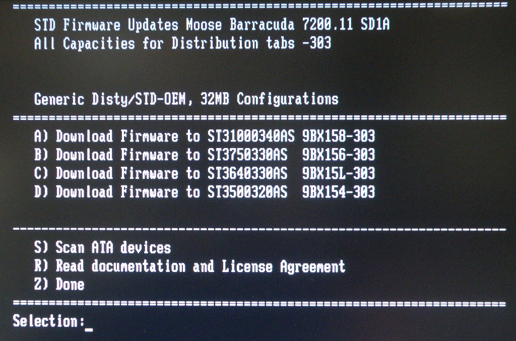 | Barracuda 7200.11 | ST3500320AS ST3640330AS ST3750330AS ST31000340AS | SD15 SD16 SD17 SD18 SD19 AD14 | SD1A |