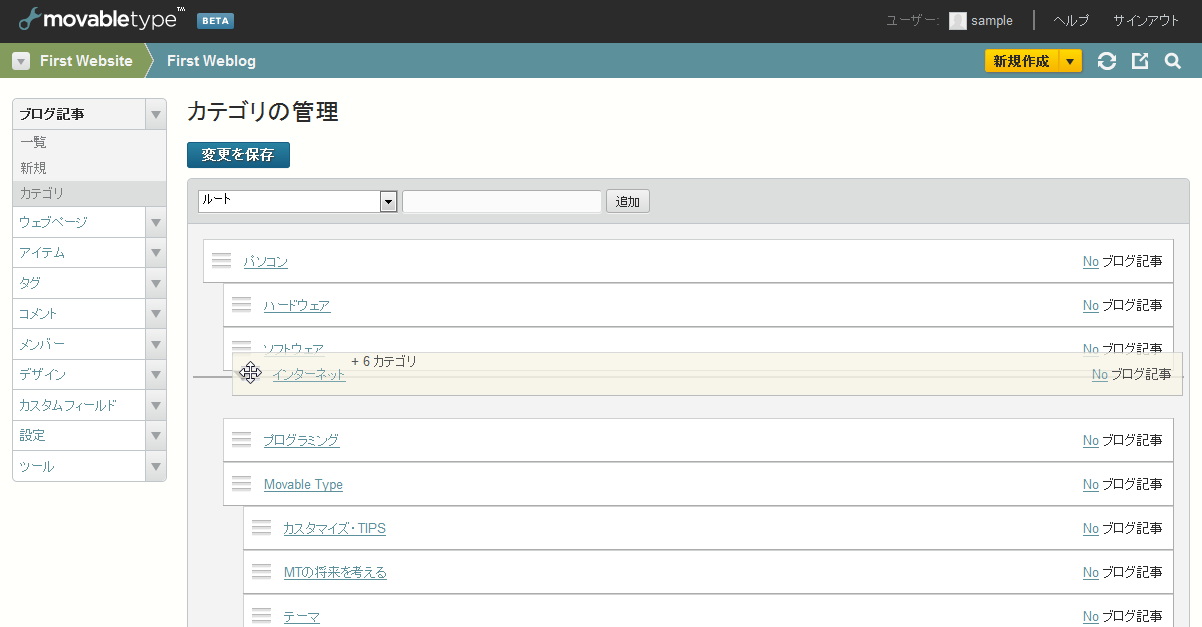 Movable Type 5.1では、前々から要望が多かったカテゴリとフォルダの並べ替えが、ついに標準機能になります。