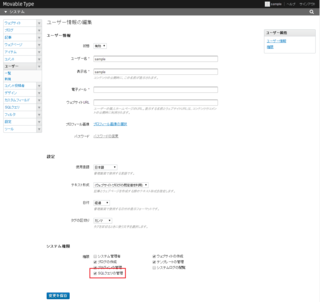 なお、Movable Type標準の「ブログ管理者」と「ウェブサイト管理者」のロールには、「SQLクエリの管理」の権限も与えられます。